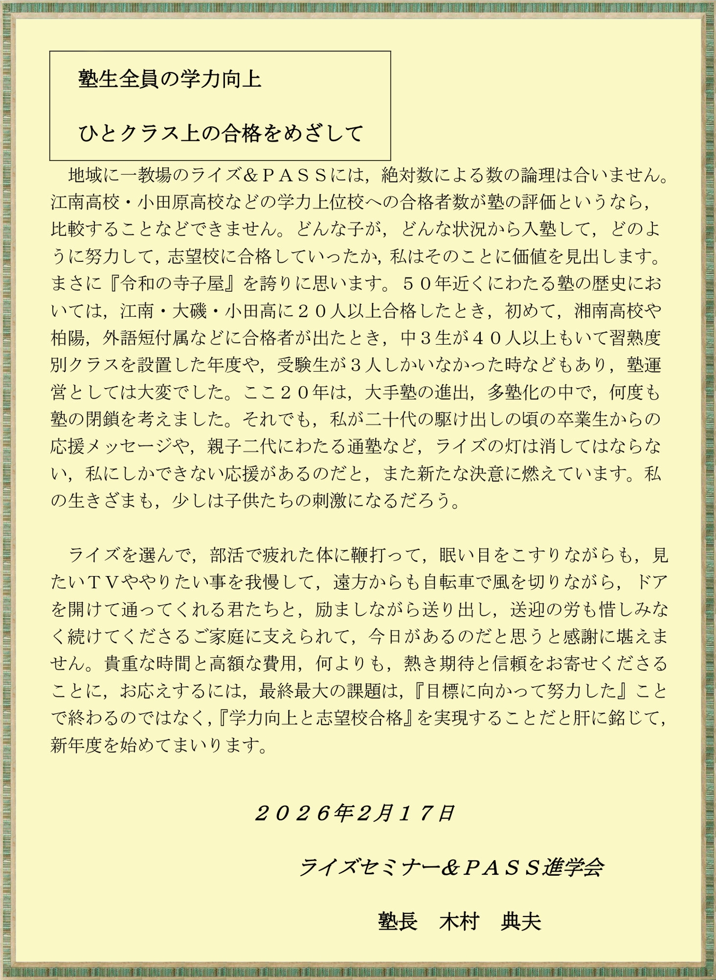 塾 長 よ り