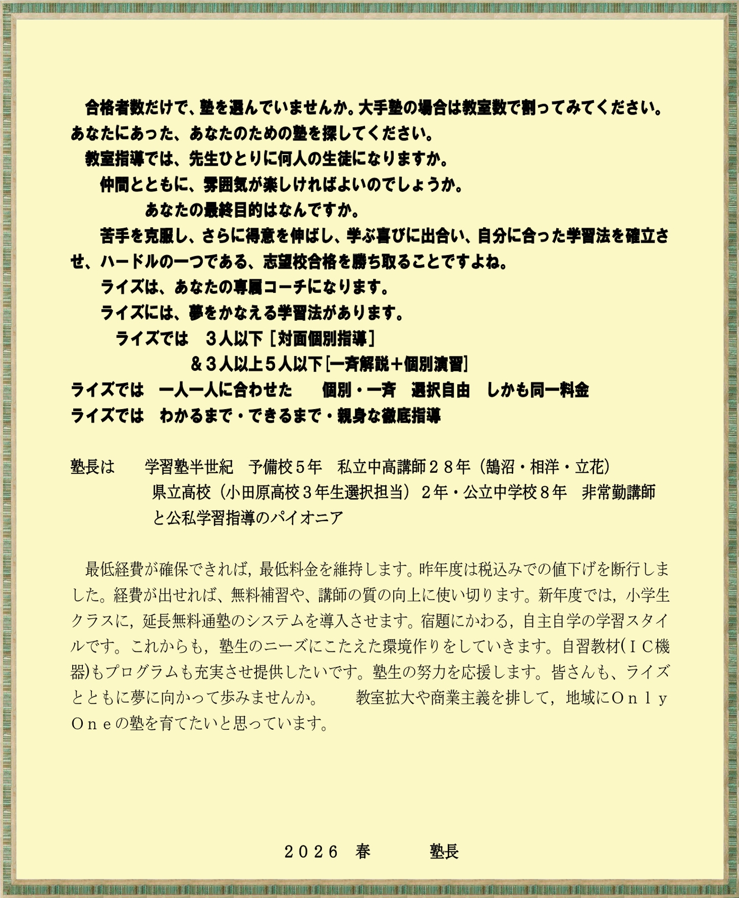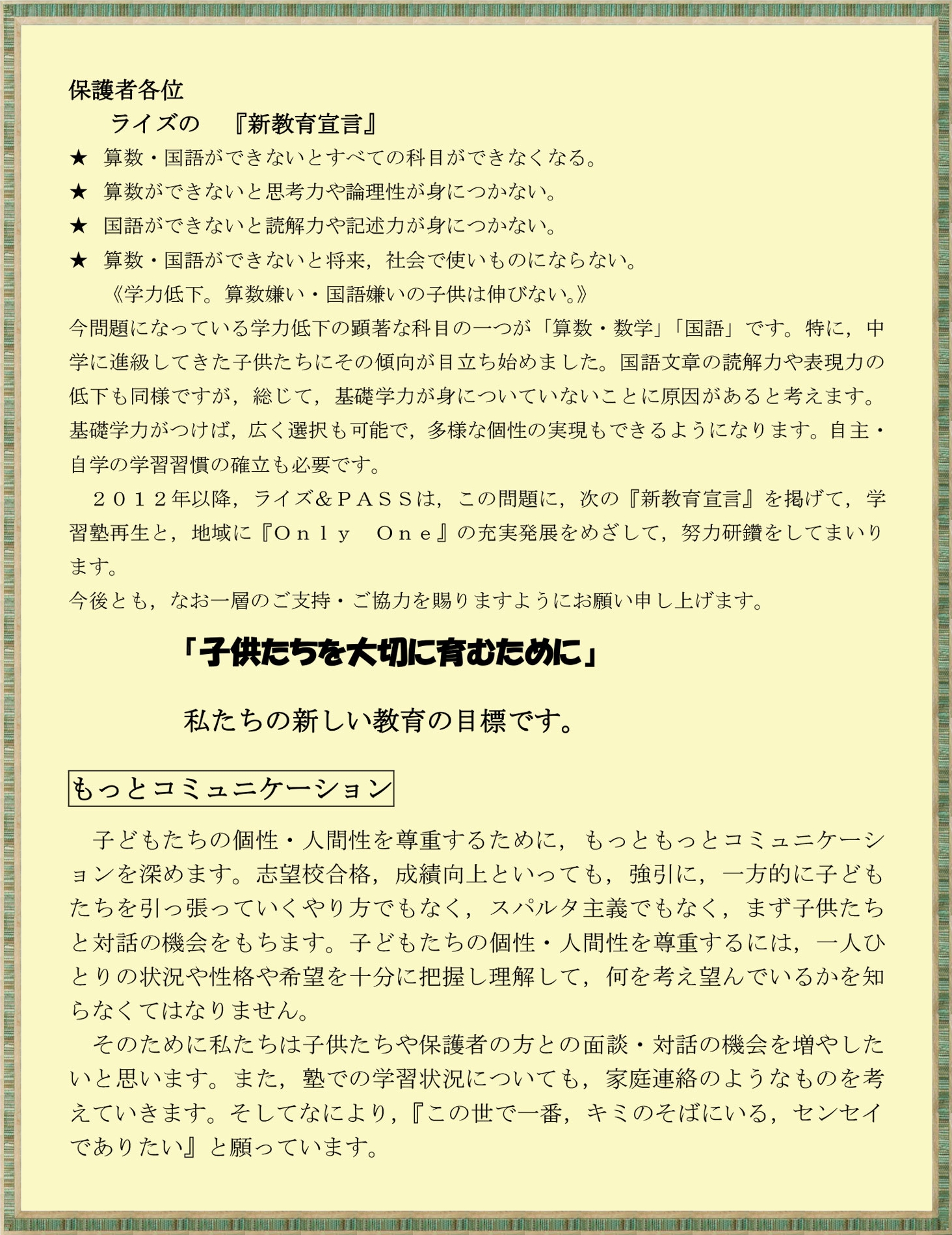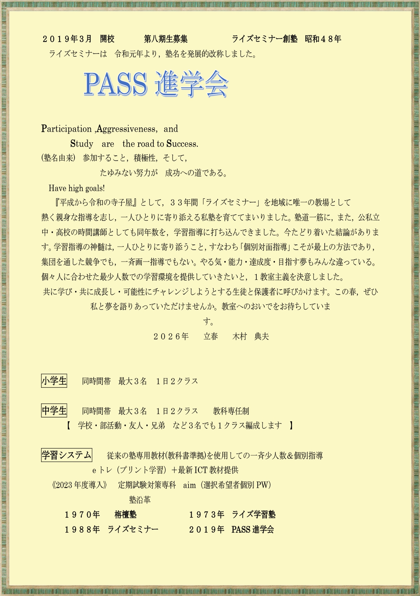 塾 長 よ り