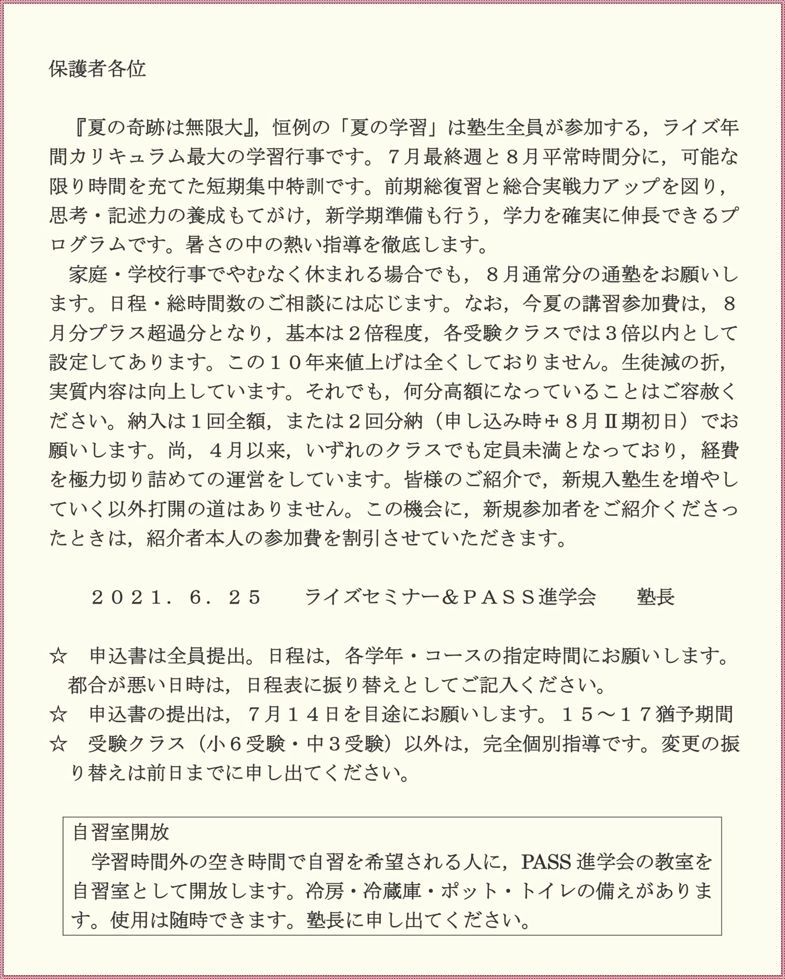 共に学び・共に成長し・可能性にチャレンジしようとする生徒と保護者に呼びかけます。この春,ぜひ私と夢を語りあっていただけませんか。教室へのおいでをお待ちしています。 2024年立春